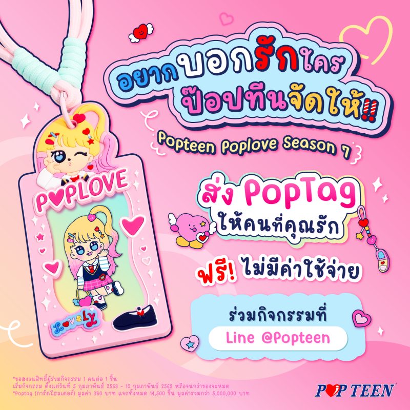 - “ป๊อบแท็ก (Poptag)” จะจัดส่งถึงคนที่คุณรักตั้งแต่วันที่ 9 กุมภาพันธ์ 2569 เป็นต้นไป
